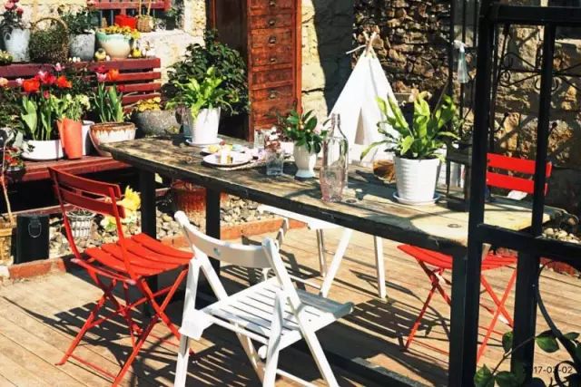 可以在鲜花簇拥的小院里,