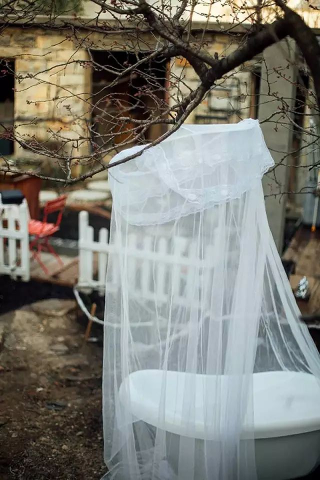 樱花树下的浴缸与纱帐,