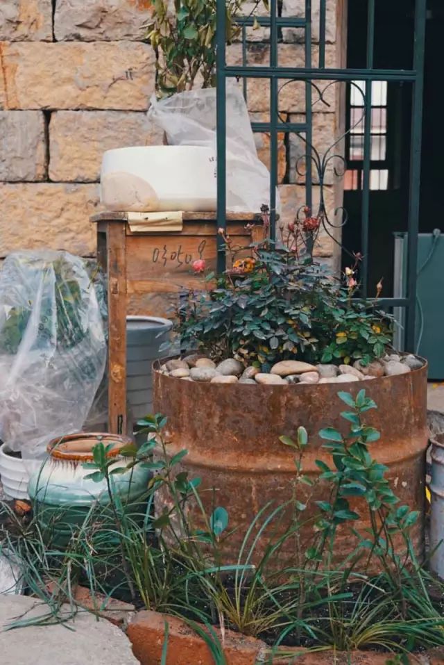 捡来的锈迹斑斑的汽油罐,
