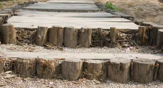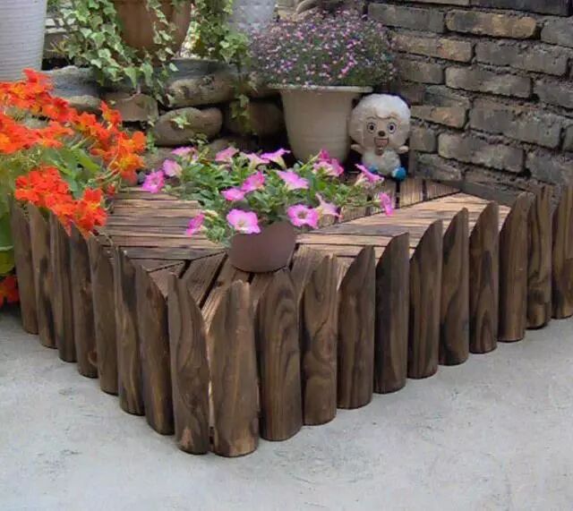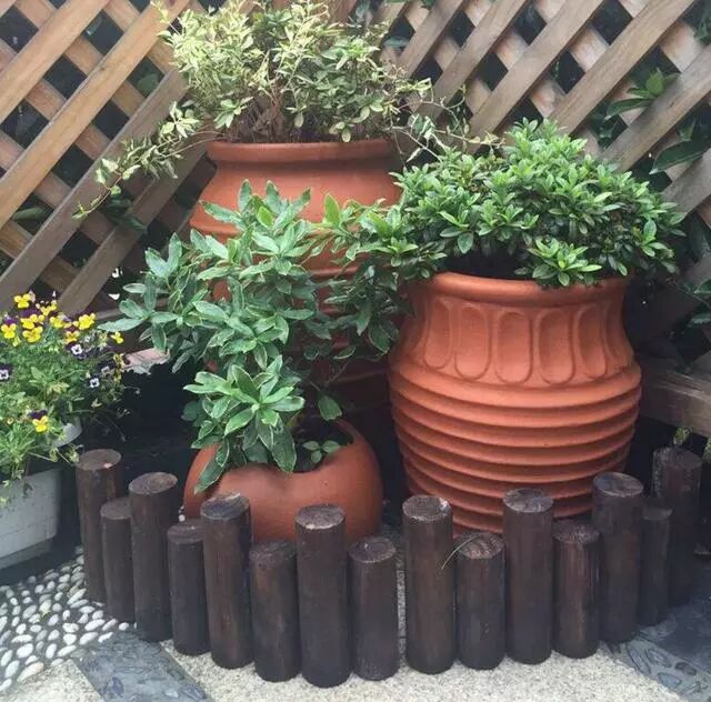 ▲用木桩做绿植角落的围栏