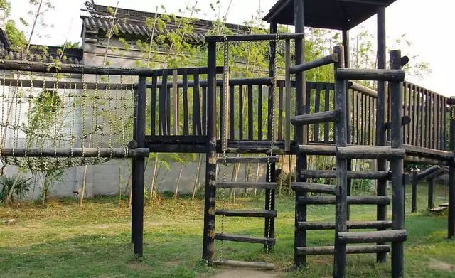 ▲在院子里搭个木质小桥,或是给孩子设计个攀爬游乐场