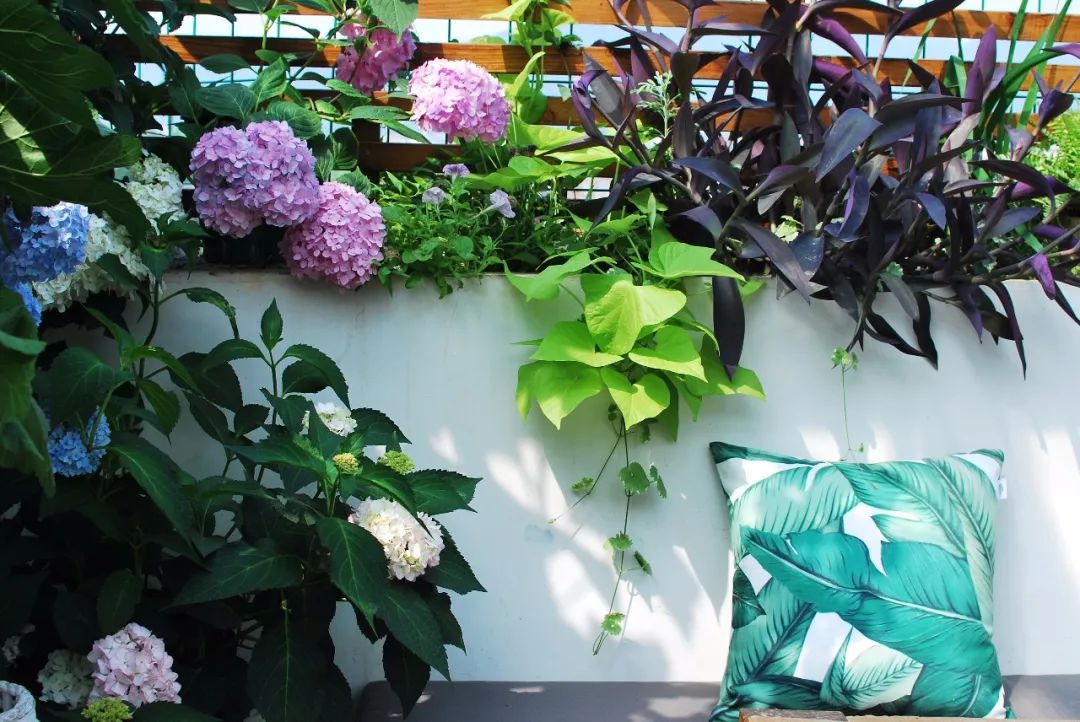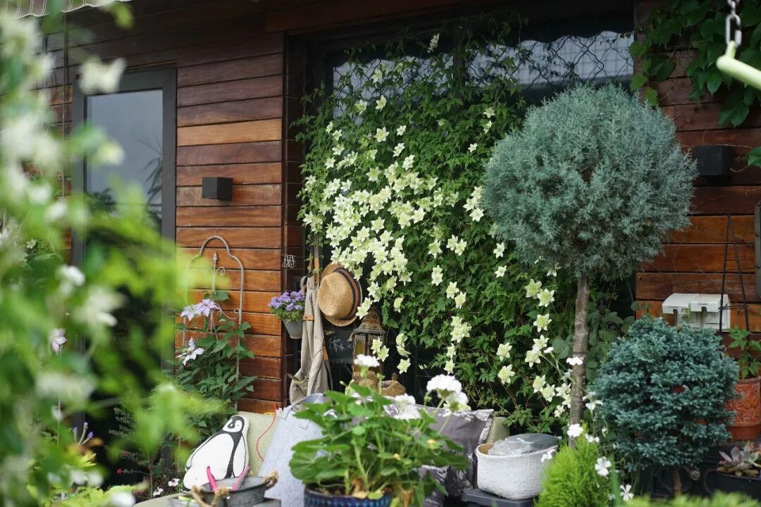 从几千张国外露台照片中汲取灵感,又混迹于各种花友群学习经验,短短一年的时间,她种了100多棵月季、70多种铁线莲、40多棵绣球,还有各种各样的球根和花卉。