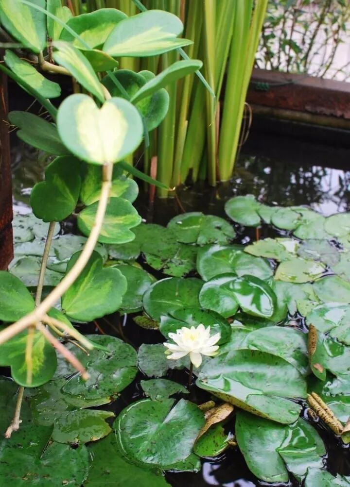 除了各种可以提升生活幸福感的功能区之外,狗子猪还设置了一方小小的水景,里面可以养鱼和乌龟,也种了不少美丽的荷花。