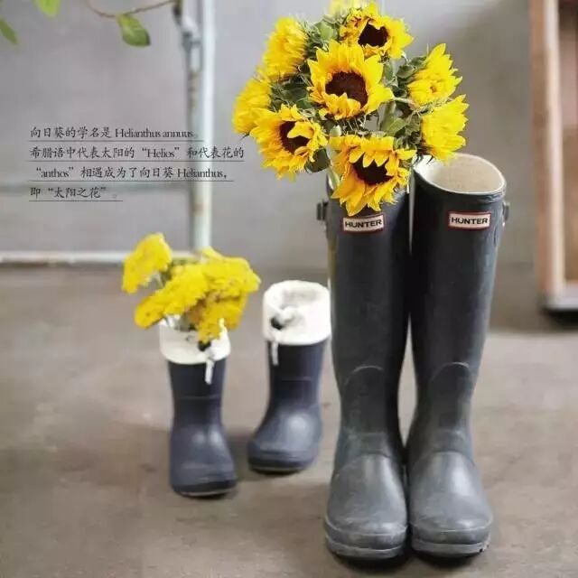 没有用的旧雨靴、马丁靴,甚至洞洞拖鞋,都可以用来做成花器,放在角落,或订在墙上,都可以打造一个美丽的小花园。