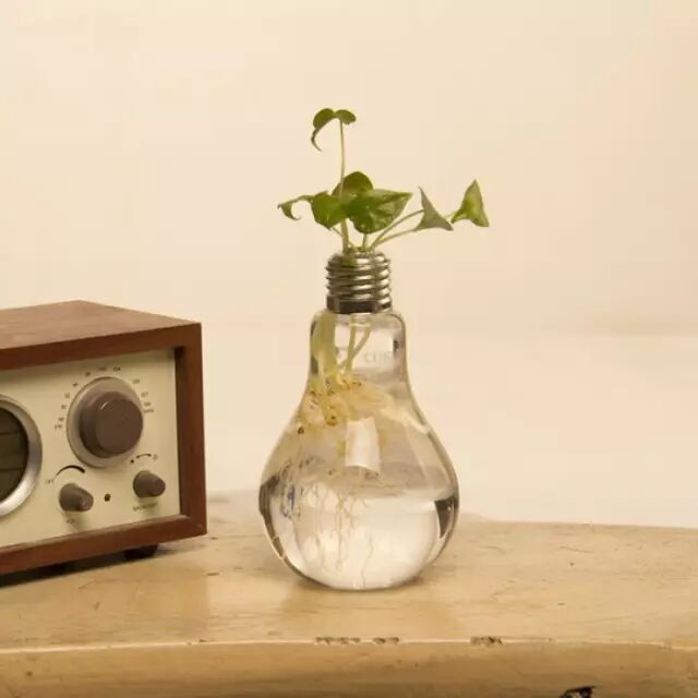 取一个无用的灯泡,去除灯丝等,放一两朵花于内,或悬挂或摆置,都是一道风景线。