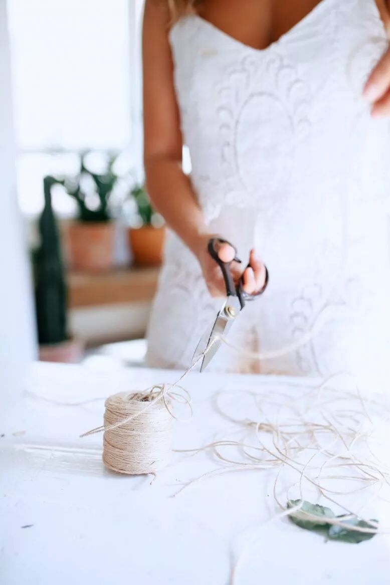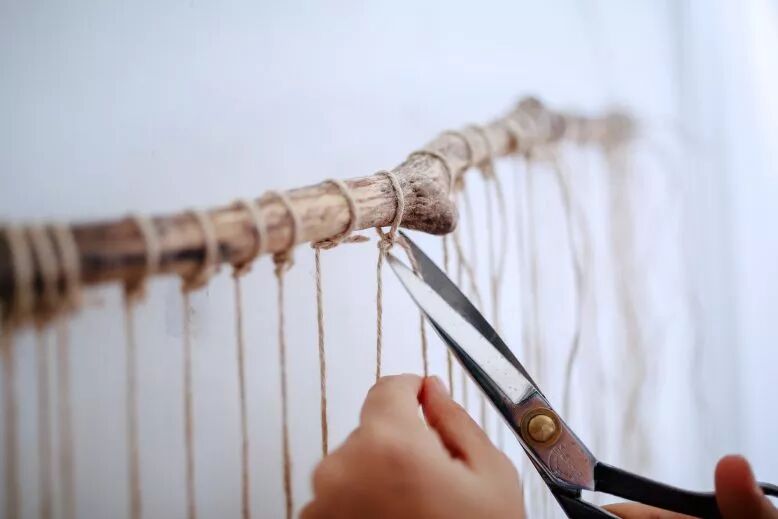 如果想要制造交错的视觉效果,不喜欢太整齐的话,每根麻绳剪下1m左右即可,后续再仔细修剪。(注意:不要剪得太短)