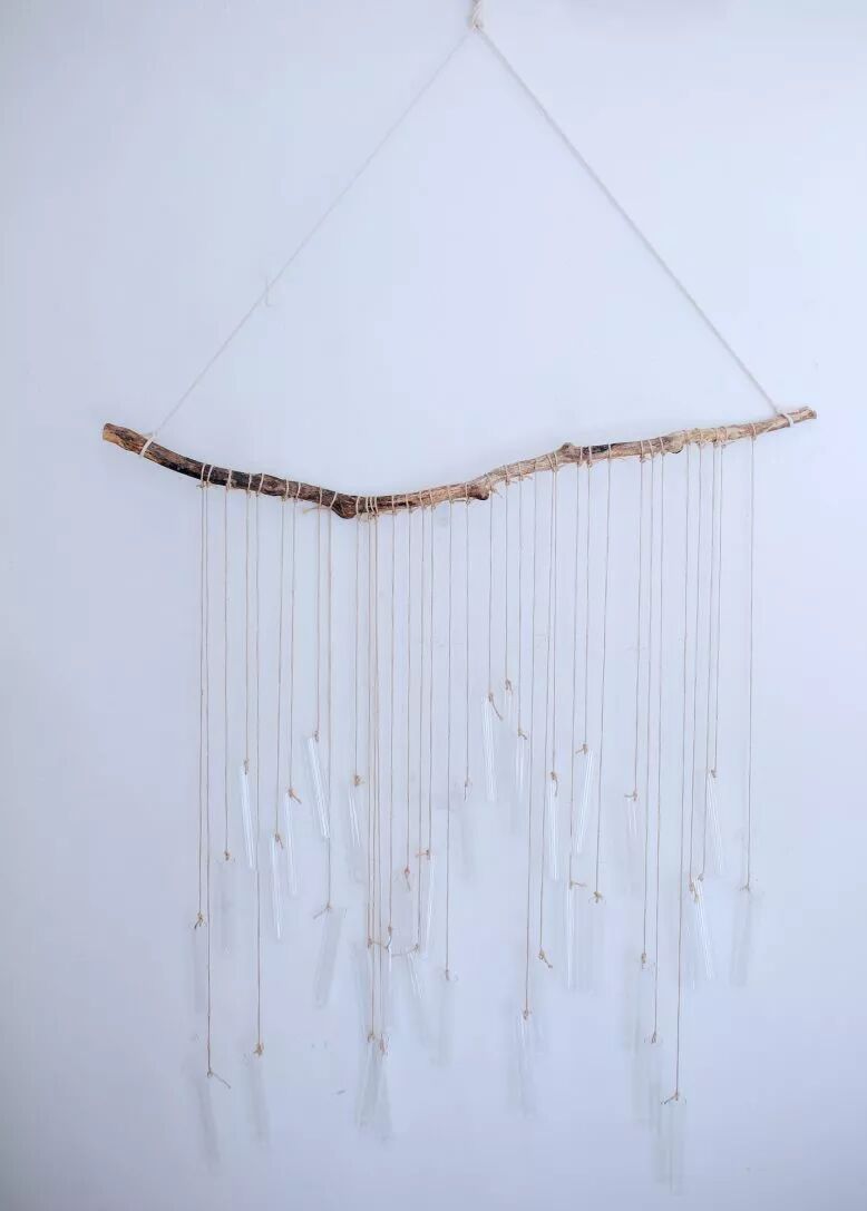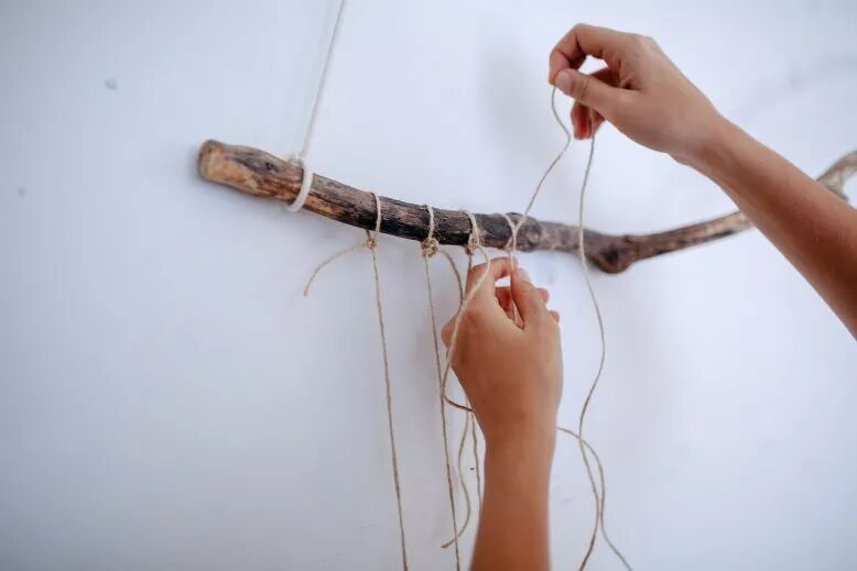 先找一根绳子绑在树枝的两端,然后把它挂在墙上,以形成一个稳固的三角形。可以灵活的调整下位置,直到这个框架稳定。