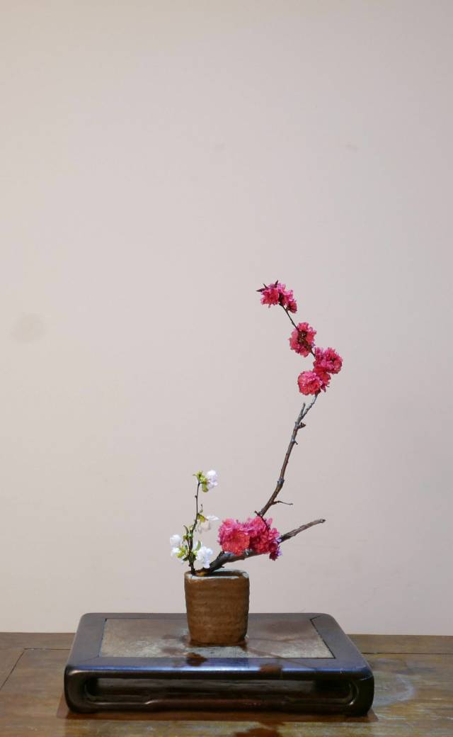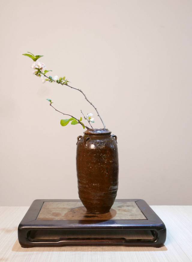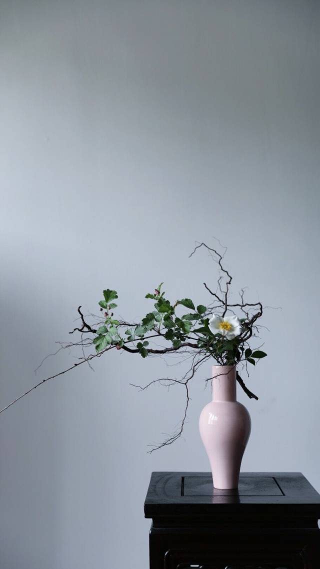 禅家的瓶花,明快小巧,一角式,甚至残缺、单纯,目的在于突出孤远、空寂、闲静的禅意。这也体现了禅家多即一、一即多的真谛,十分强调每种花材的色调、姿态和神韵之美。