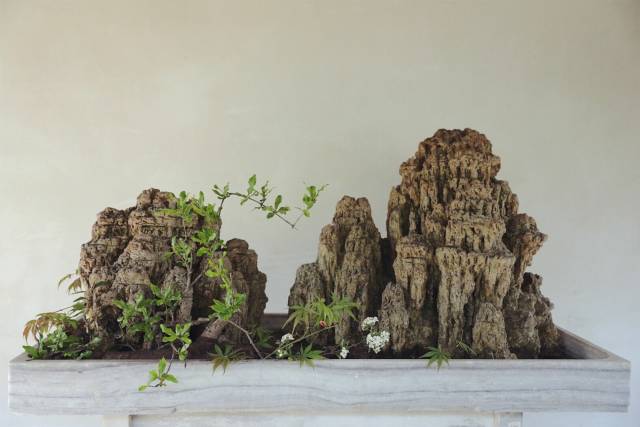 试想,窗外四壁薜萝满墙。中列松桧盆景或建兰一二,绕砌种以翠芸草令遍,茂则青葱郁然。