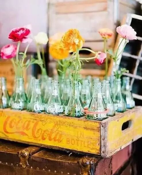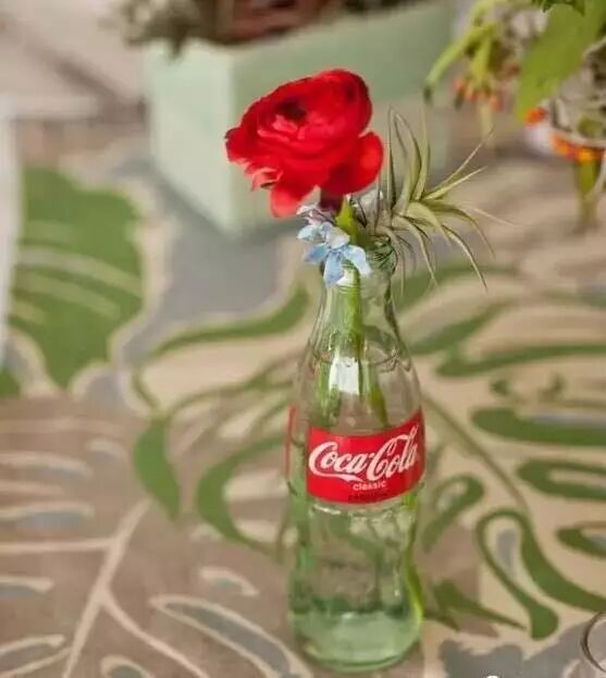 ▲喝完的可乐瓶,不要丢弃,最适合用洋牡丹、康乃馨、小雏菊这类小花束插花。
