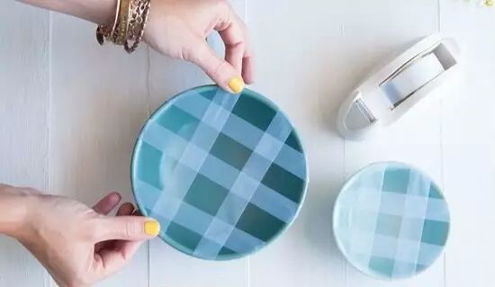 ▲如果遇到很难成形的花,可以先用胶带在瓶口固定支撑,把器皿横横竖竖地贴一贴,留出网格。