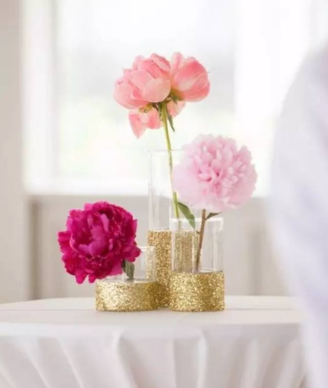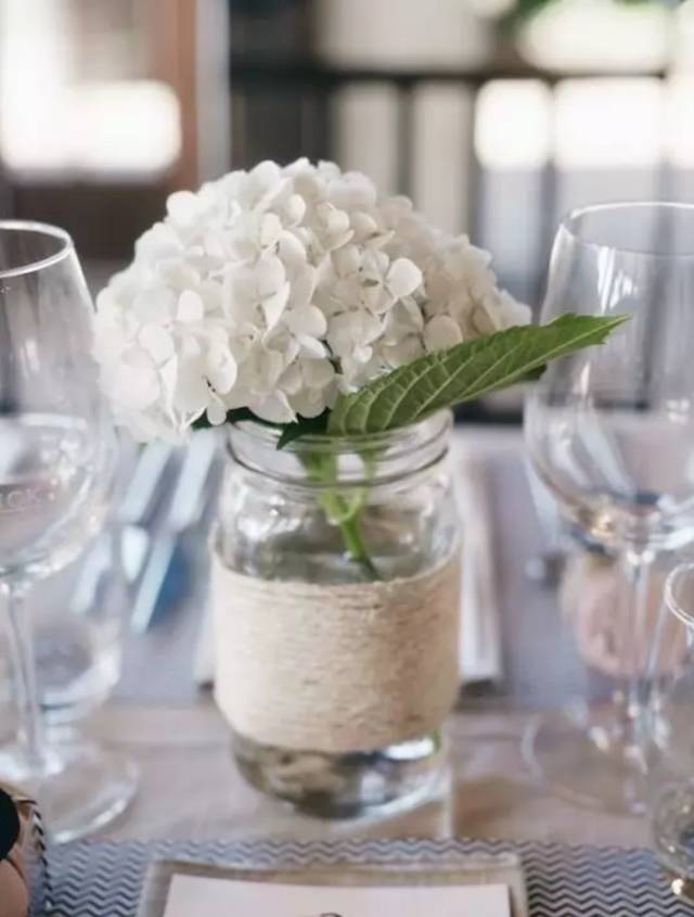▲还有生活里最简单的玻璃瓶,只要稍加装饰,也可以成为一款高颜值花器。比如给单调的玻璃瓶缠上麻绳,或者贴上一层金色丝带,文艺小清新的感觉立马就出来了。