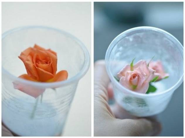 2、底部要先加部分的石英砂,操作时固定花柄。将花材竖直放置,花柄固定在砂子中。注意要竖着放,不然,石英砂的重量容易改变花朵的形状。
