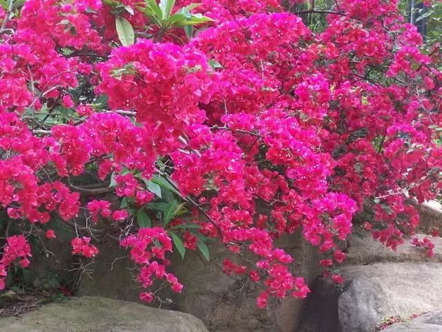 2、“勤水花不开,少水花不断”。三角梅适合在常年温暖和阳光充足的地方栽种,不需要频繁浇水。开花前40天开始控水,控水时不能施肥,控水3周后浇足水,使用一次磷酸二氢钾溶液,使花朵更集中。