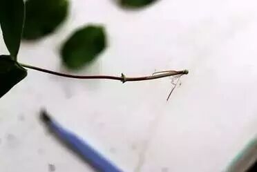 2、用未开花的枝条扦插只需要将下面的几片叶子摘掉,在切口处剪斜口。