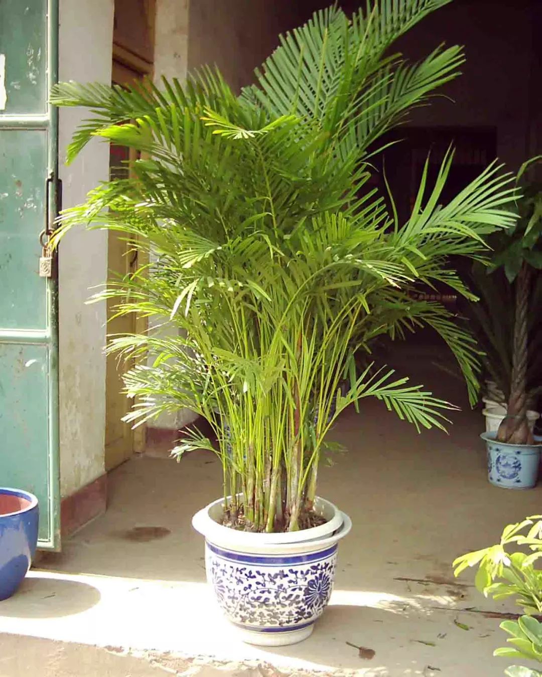 室内可以盆栽的花卉有很多,散尾葵就是其中一种,这种植物的叶片是绿色的,也可以说是棕榈叶,叶片对二甲苯和甲醛都有着非常好的净化作用,是净化空气的小能手。