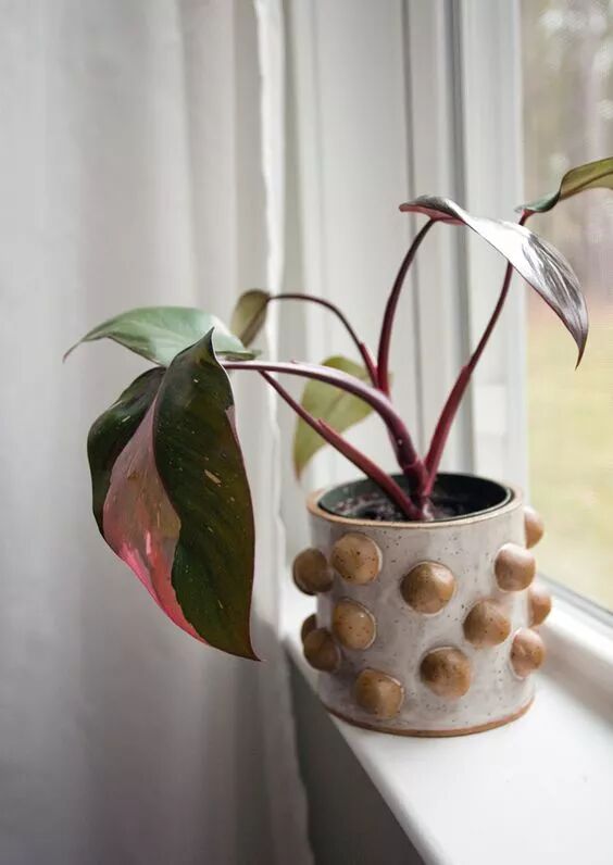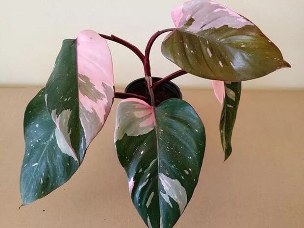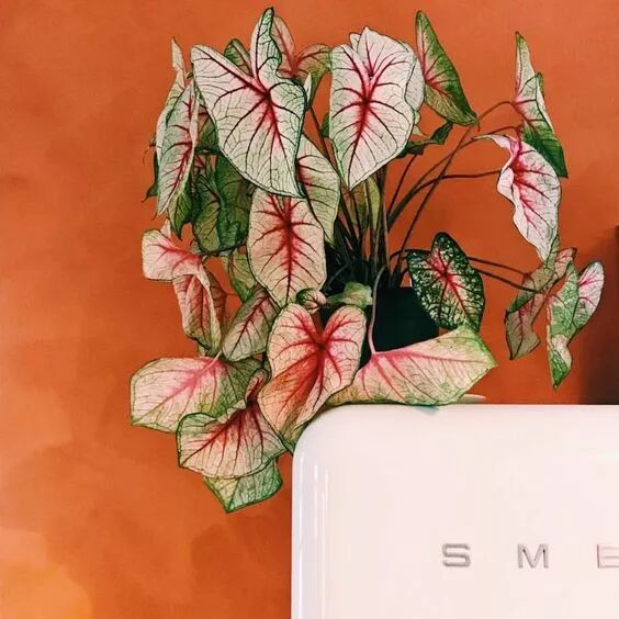 跟上面竹芋长得很像的有一位叫「粉色公主」的,属于天南星科喜林芋属,像是绿色叶片上泼了粉色油漆。