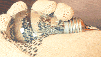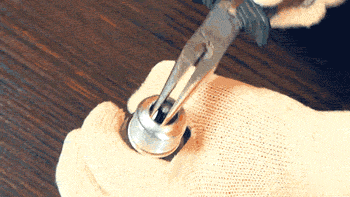 然后用螺丝刀破坏灯泡里面的元器件,再用钳子把它们都取出,注意整个过程中拿灯泡的手都应该戴手套。