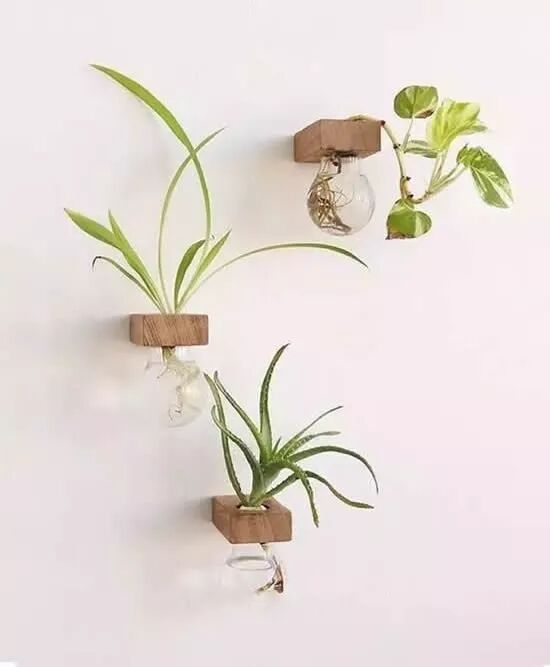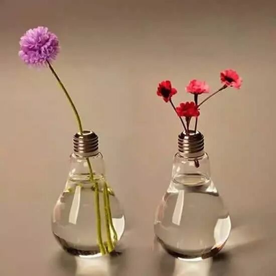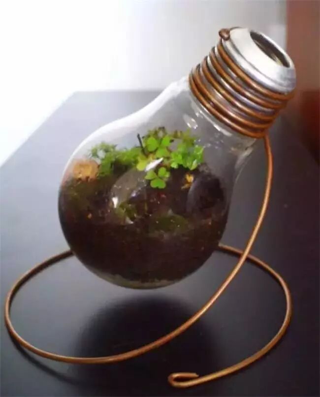 既然可以做花瓶,那当然也可以变成花盆。跟花瓶类似的改造方法,再在灯泡里填土、种入绿植即可。