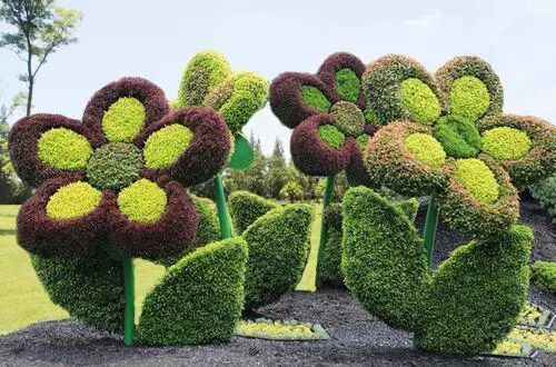 在今天,园林景观中的植物造型可以说是非常丰富多彩了。这跟古典园林也不同,因为古代追求自然,当然也是因为并没有现代科学知识的配合,古人们几乎没有想过要在植物外形上做手脚。