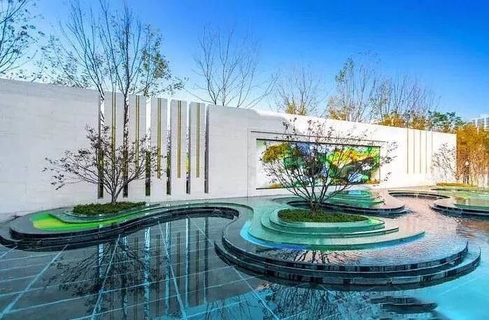 例如,现代园林景观中常见的人工池,利用具有几何美感的外形,使整个园林景观更加灵动却又不失美感。