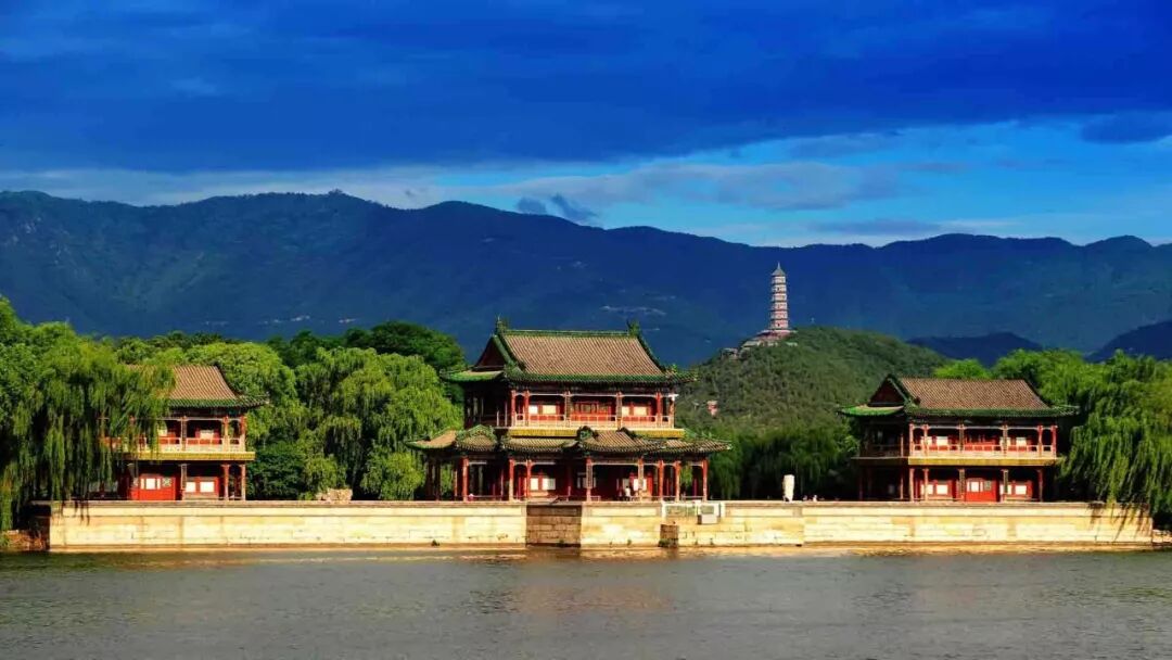 如代表皇家园林的颐和园,在群山的包围下更显气势恢宏,山虽然不在园中但却成为了园的一部分,这就是巧妙借用远景的手法。