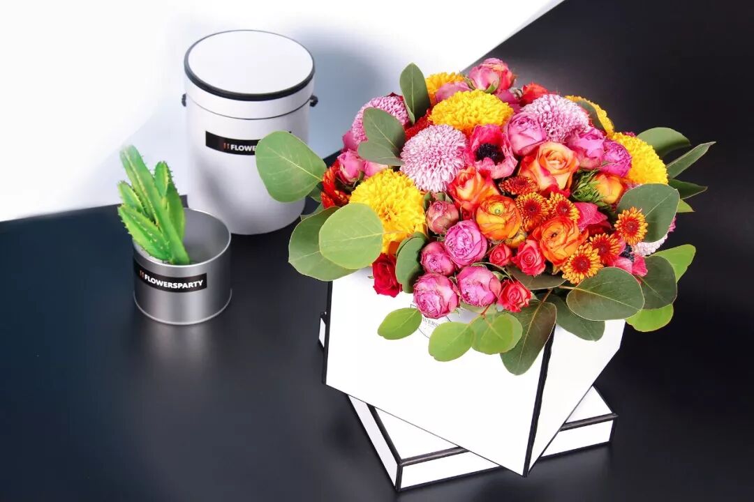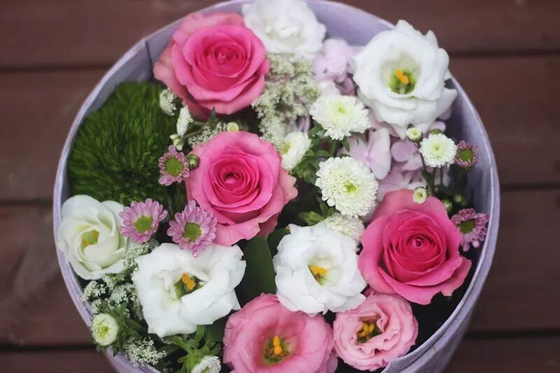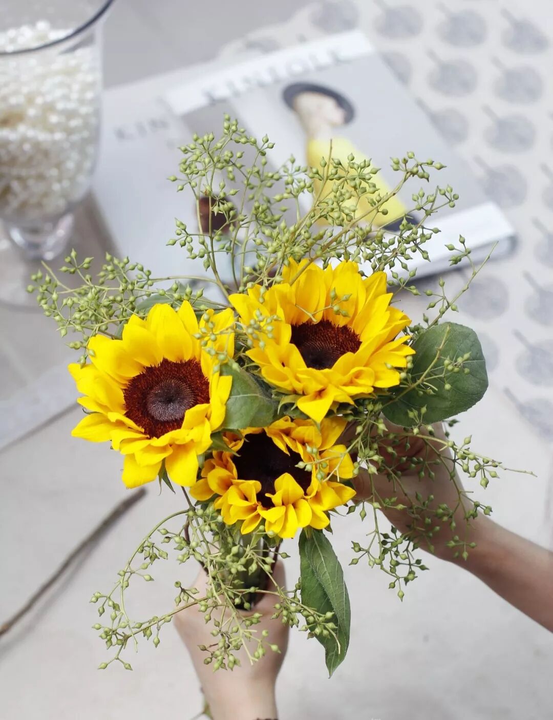 先保证你画面的角度,再去考虑用什么构图,你可以适当的在你的花店里做一个简单的背景,纯色、暗黑色系、花艺作品的同类色,这些简简单单的背景会使你的作品画面显得干净,也可以适当加一些咖啡杯、书本等小配饰,会有一种清新小文艺的感觉。