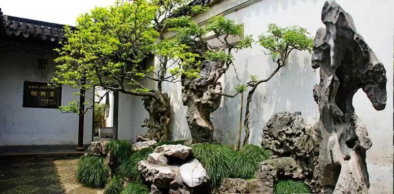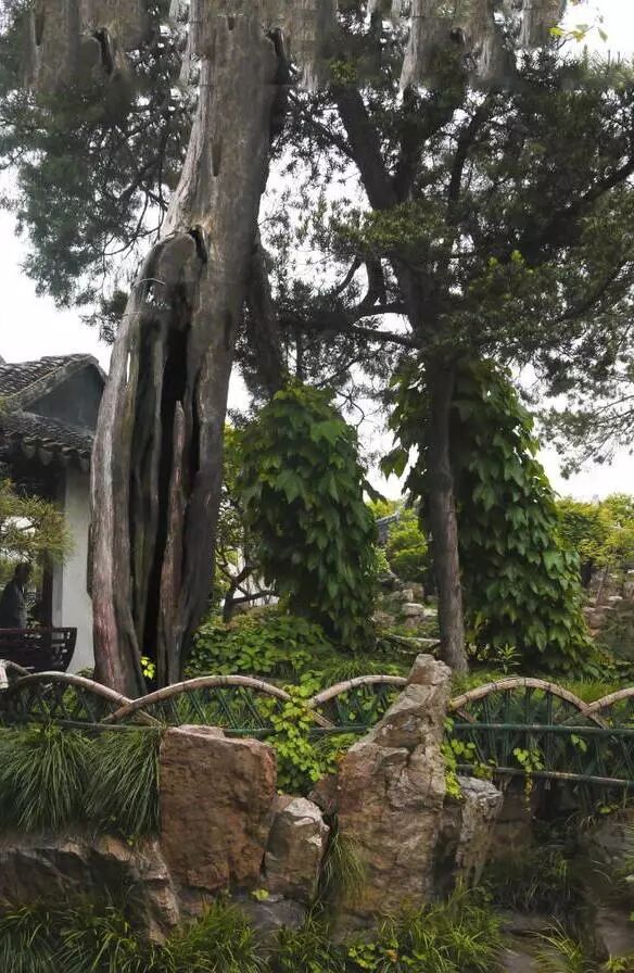 拙政园的枫杨、网师园的古柏,都是一园之胜,左右大局,如果这些饶有画意的古木去了,一园景色顿减。树木品种又多有特色,如苏州留园多白皮松,始园多松、梅,沧浪亭满种箬竹,各具风貌。