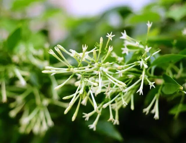 夜来香又名夜香树,原产美洲热带。叶片心形,边缘披有柔毛。每逢夏秋之间,在叶腋就会绽开一簇簇黄绿色的吊钟形小花,当月上树梢时它即飘出阵阵清香,这种香味,却令蚊子害怕,是驱蚊佳品。