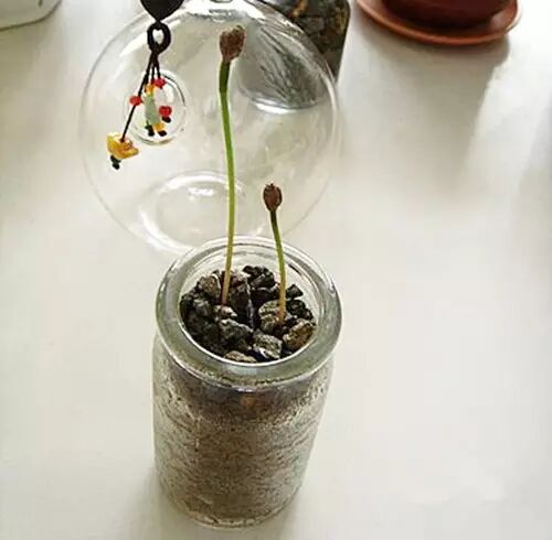 圣诞节买的松果,埋一半露一半,长出清新小盆栽!
