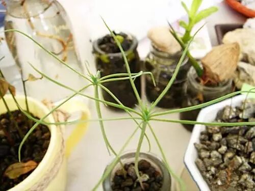 2.大部分的种子都要先泡水一星期左右,种植松果也要经过这么一关,泡在清水里,天天换水。