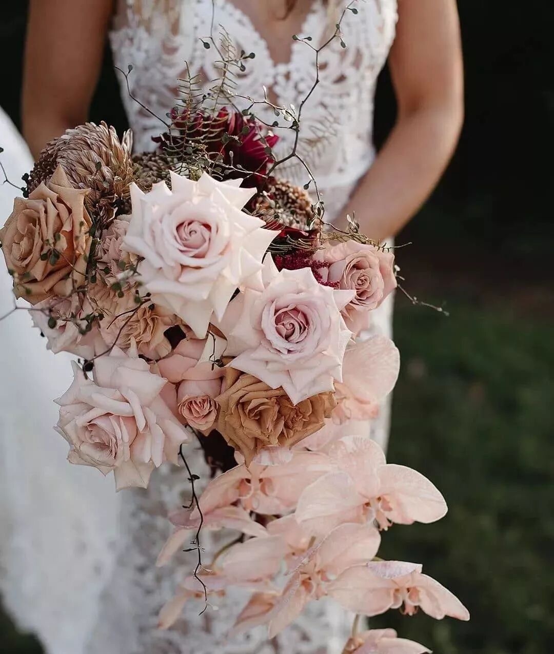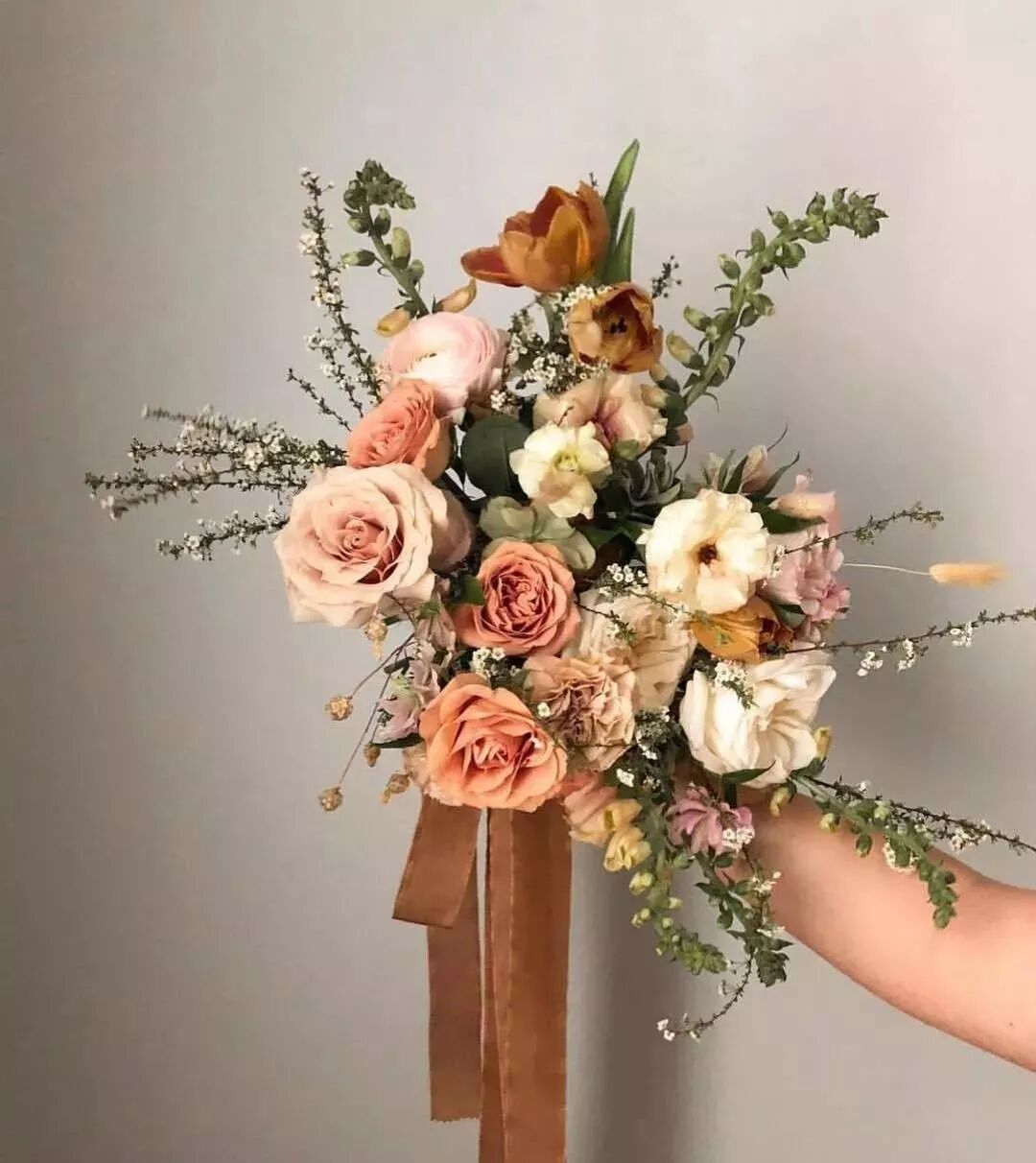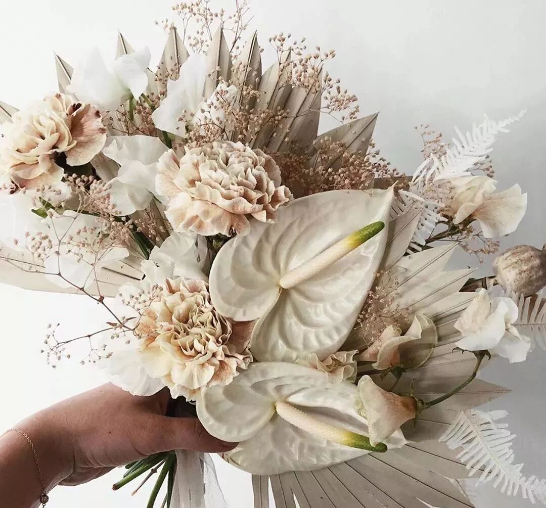 现代,随着婚礼手捧的加速流行,它们也被加入越来越多的花材,种类也不断丰富,新娘选择花材时,更多的是考虑个人风格和色彩搭配。