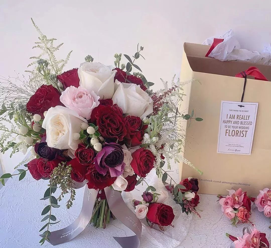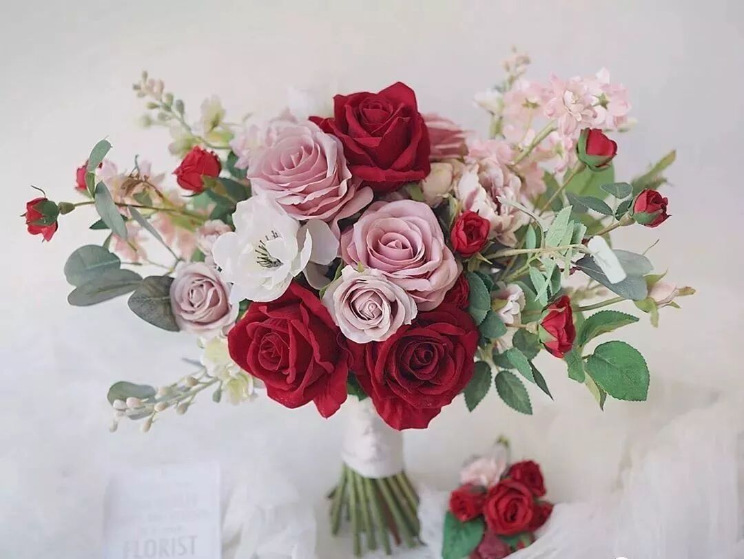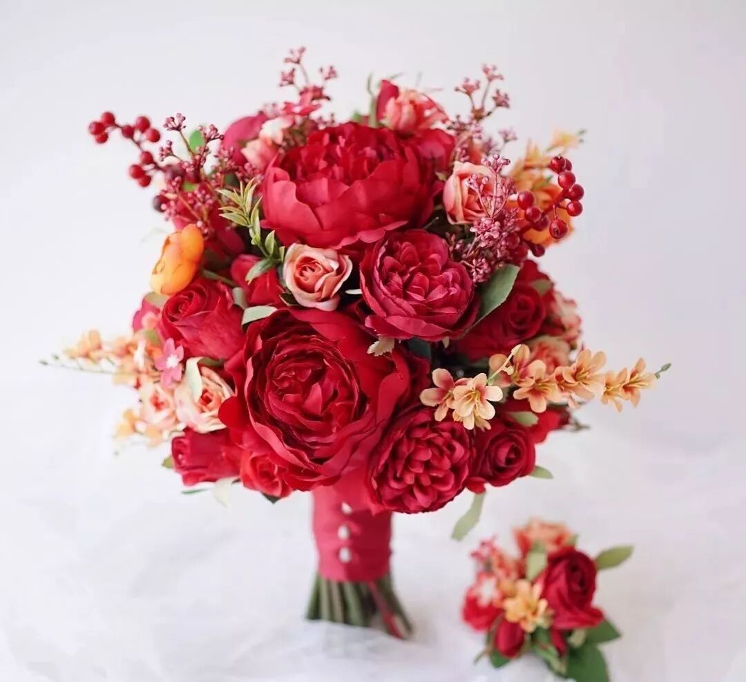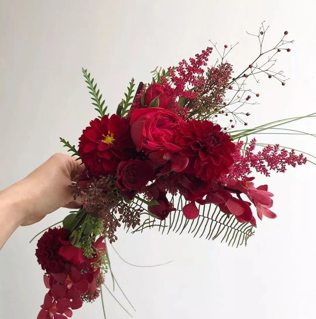 红色也是手捧花中常用的一种色彩,特别适用于传统的婚礼中,热情洋溢,完美展现新娘的幸福和甜蜜感。