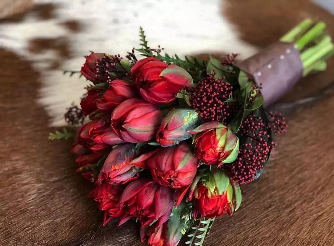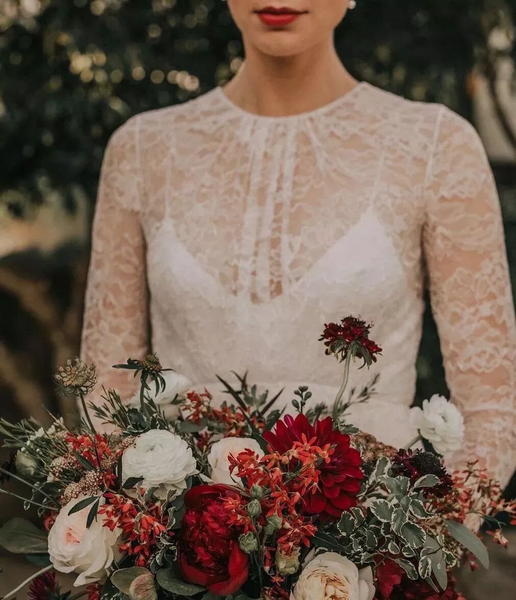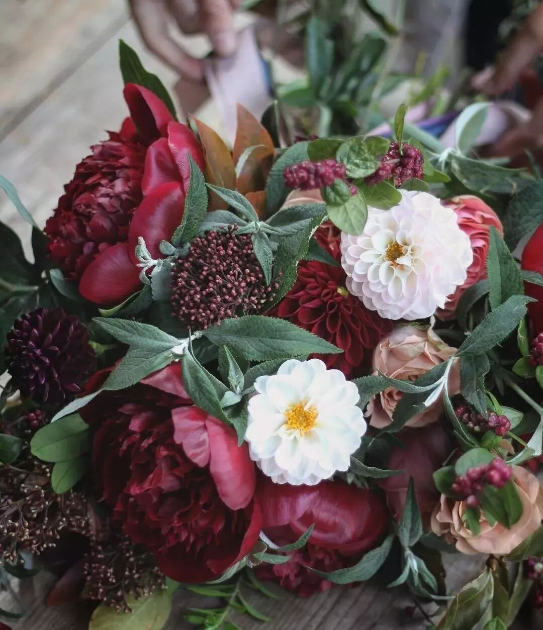 红色也是手捧花中常用的一种色彩,特别适用于传统的婚礼中,热情洋溢,完美展现新娘的幸福和甜蜜感。