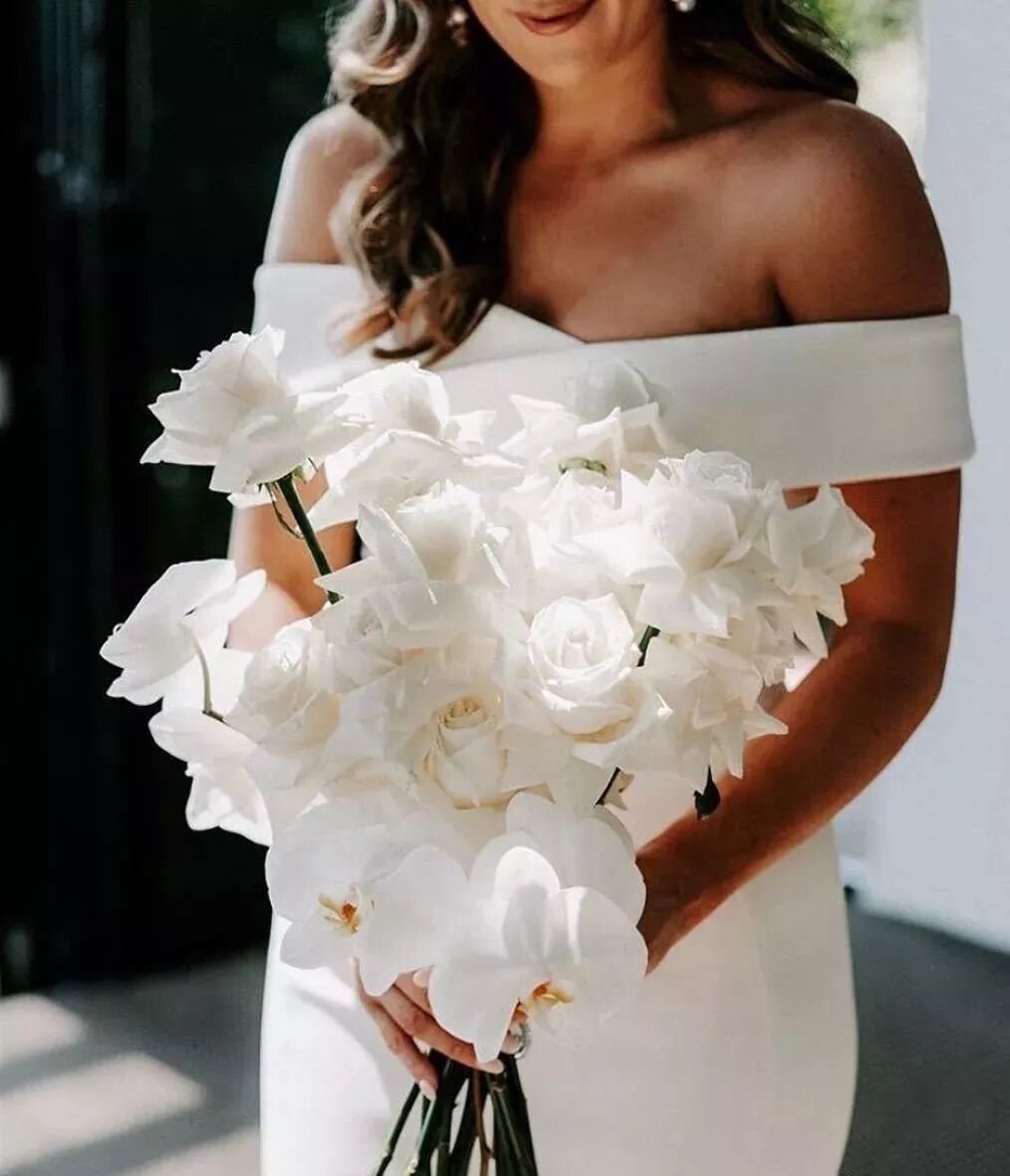 毋庸置疑,白色是婚礼中最经典的的颜色,白色系列的手捧花也是新娘们的经典选择。白色手捧花纯洁、优雅,远远看上去就有一种清新自然的味道,不但好配婚纱,还能搭配婚礼中的其它色彩。