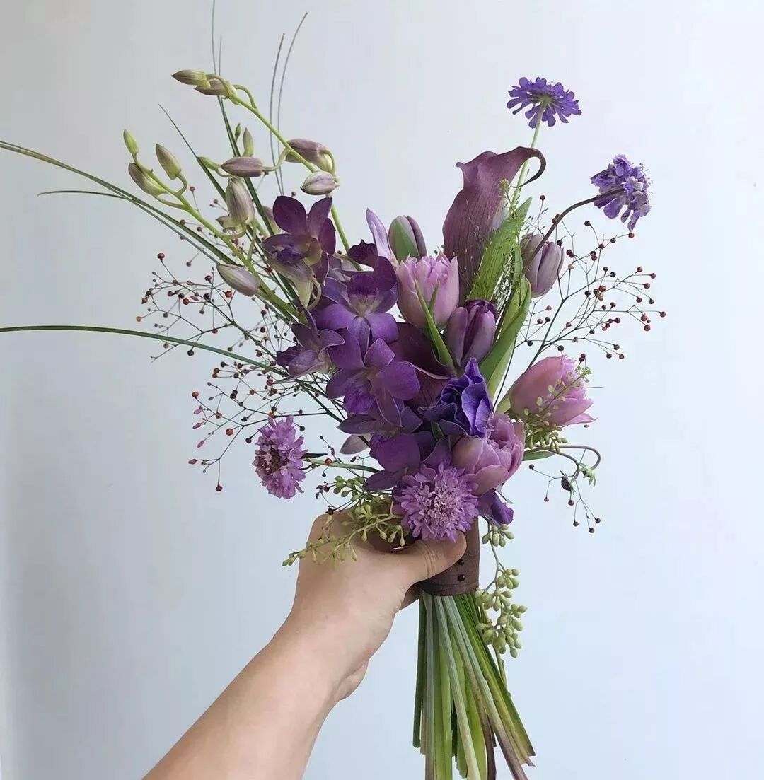 紫色是一个神秘富贵的色彩,有一种“紫气东来”的感觉,如果你是一位干练直率、拥有霸气的新娘,那么紫气逼人的手捧花绝对适合你。