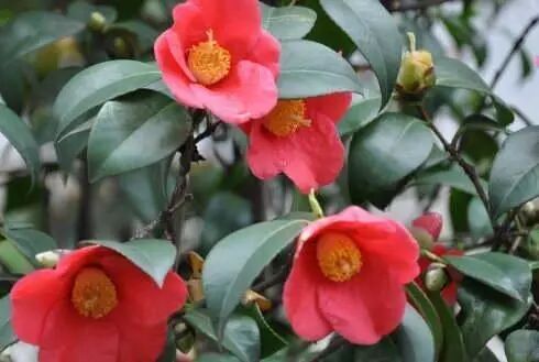 通往锅炉爷爷的小门,红色单瓣山茶花开艳,灼灼其华,尽显灿烂热烈之美。茶花的品种很多,动漫中应该是单瓣的大花金星品种。