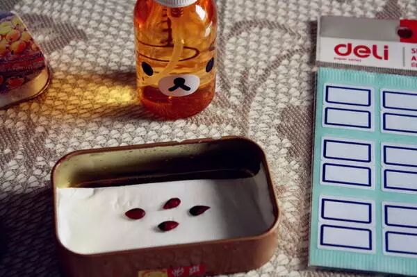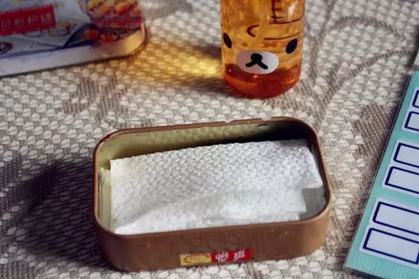 准备好一个盒子,纸巾,喷雾瓶,标签贴。