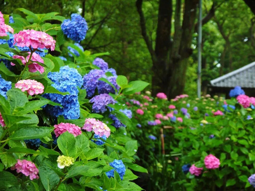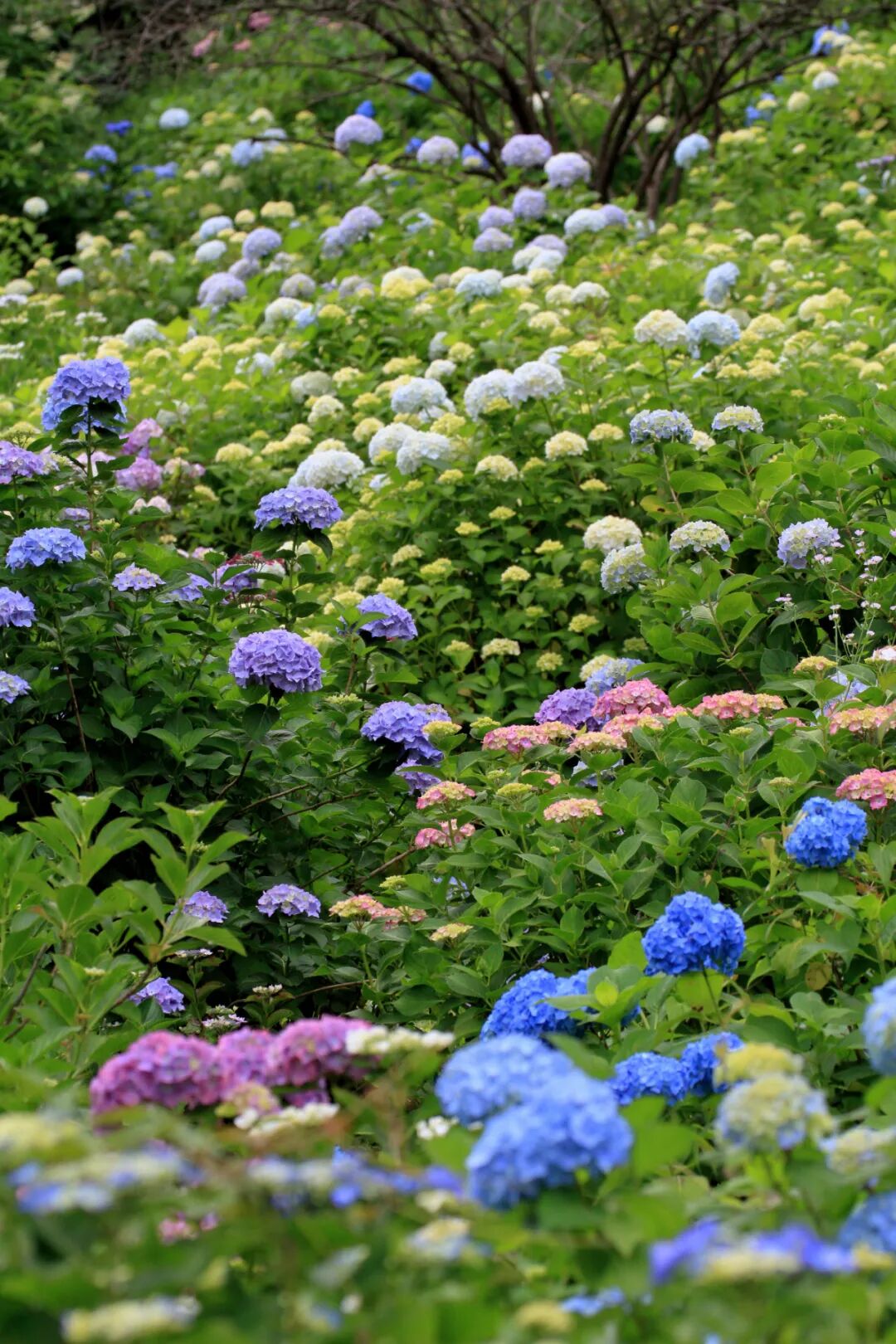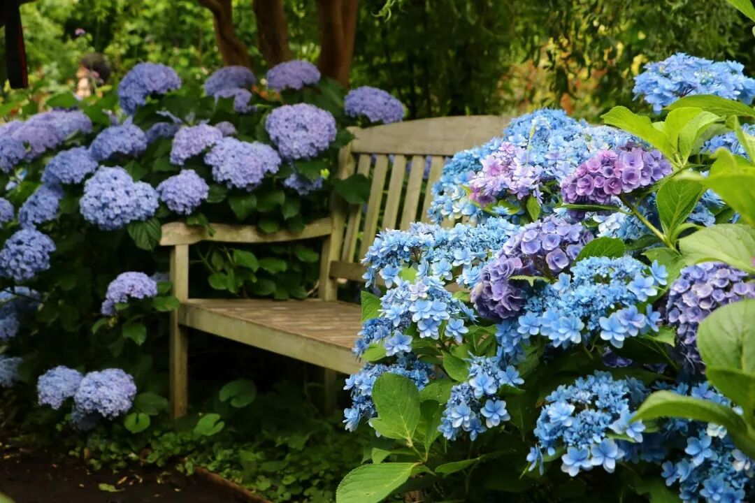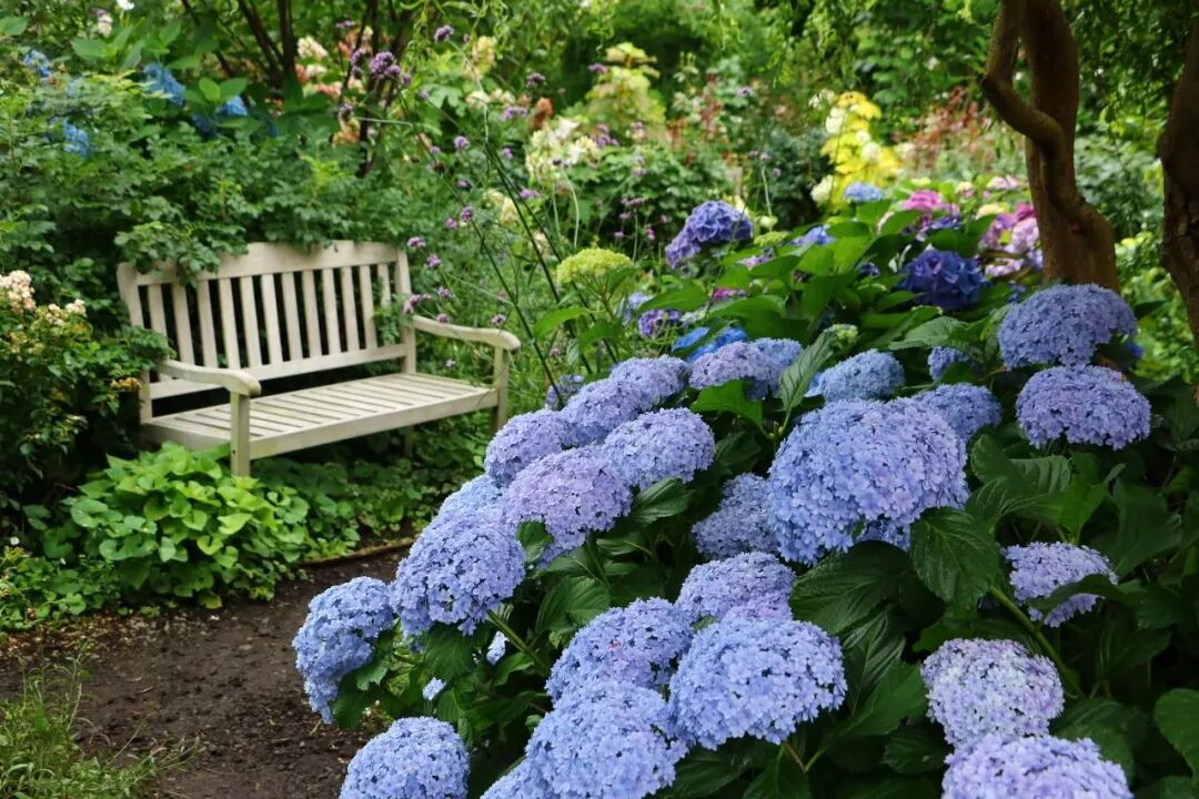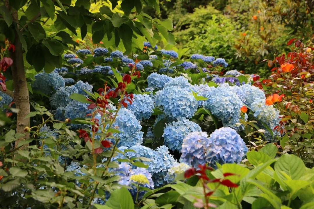 不同于月季、铁线莲的洋味儿,绣球更显古典。日本爱绣球,日语里称为紫陽花,词源大抵来自唐代白居易的诗里。