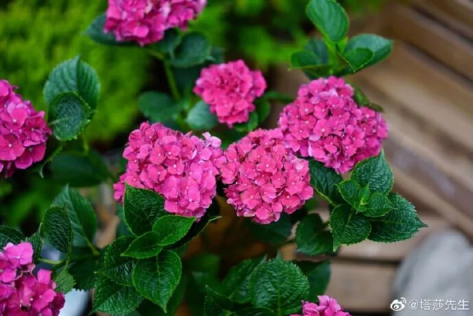 庭院栽种下一棵绣球,桃花汛来,润物细无声,悄然绽放。