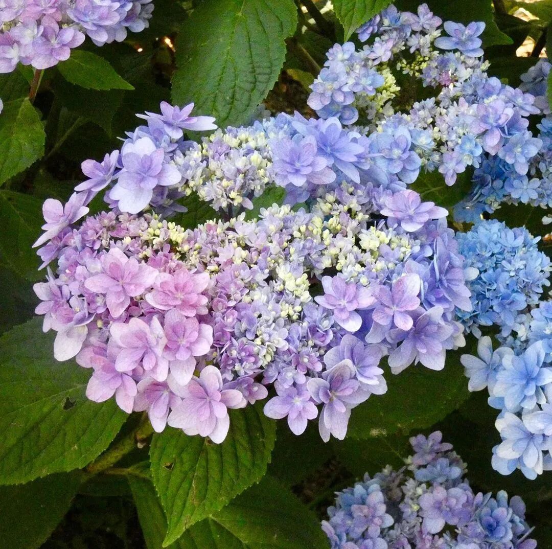 这些梦幻如水彩画的颜色,其实是绣球的基因里写就的,绣球花含飞燕草素,在铝离子的影响下,结合显色便蓝,不显色便是粉紫色调,当然在酸性环境,显色会更容易。所以也有说法,绣球,酸蓝碱粉。