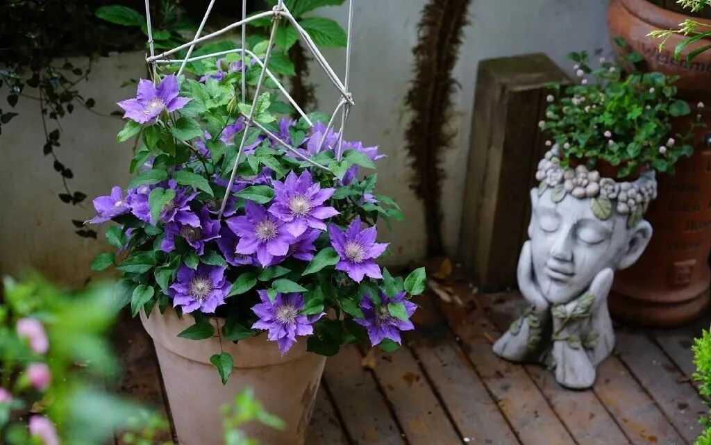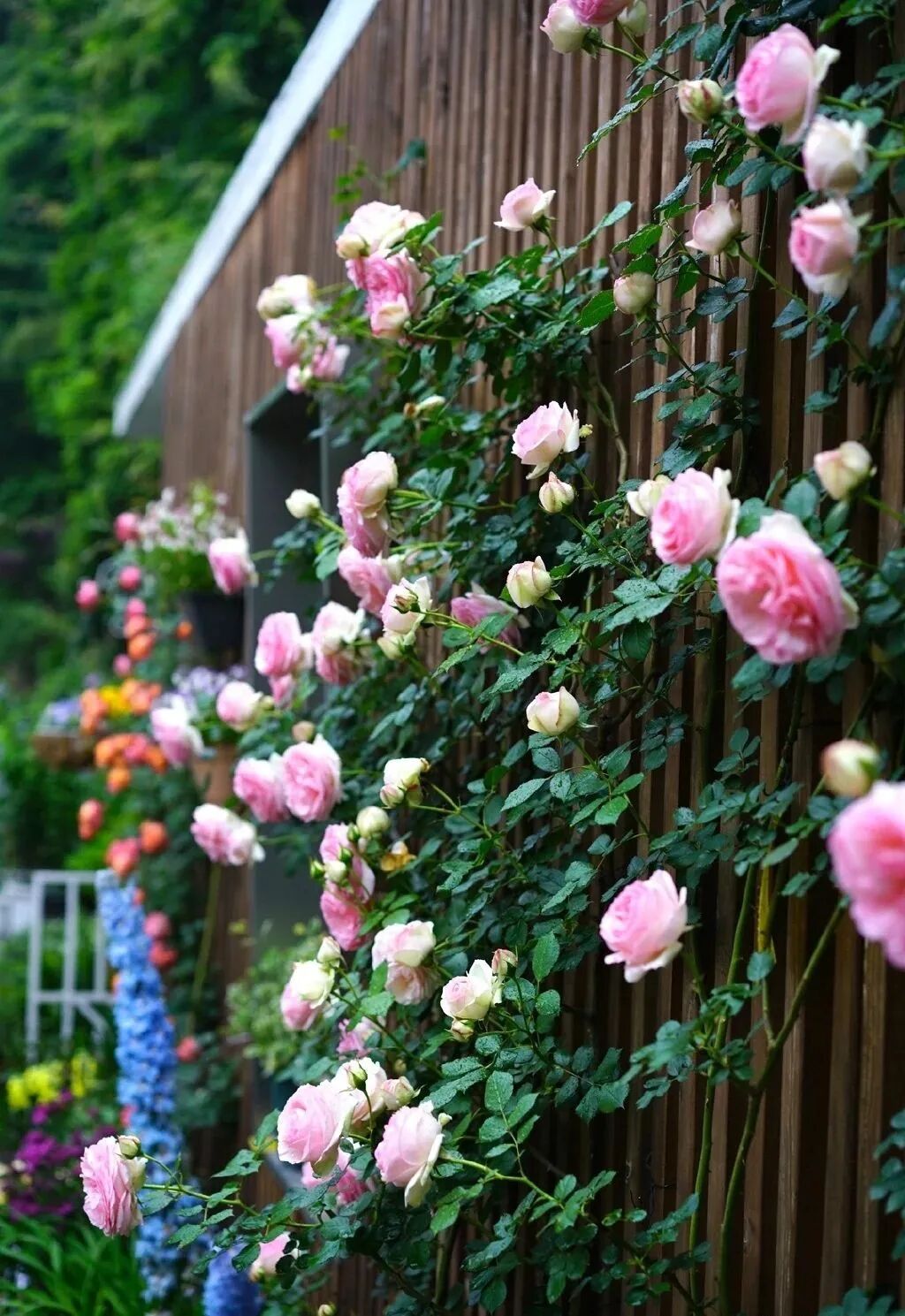 铁线莲,最是风姿绰约的美人,将铁艺栅栏细细密密缠绕。然后,各种蝴蝶一般的花在枝头,轻舞飞扬。
