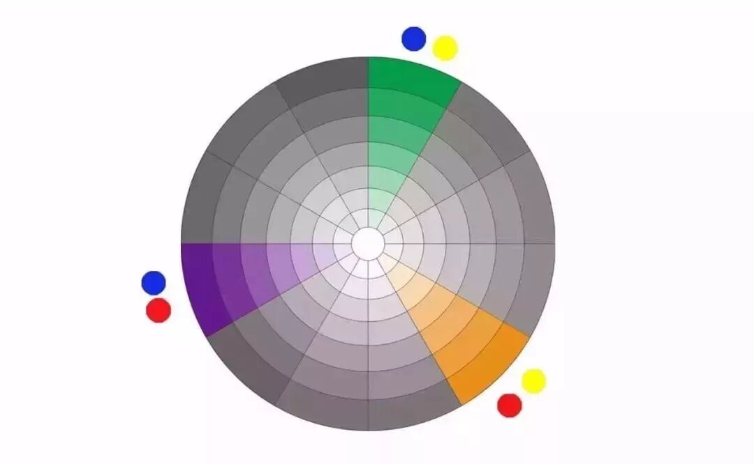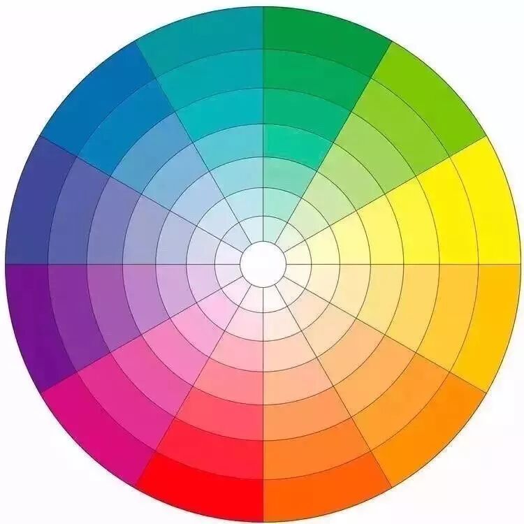 有任何两个间色或三个原色按不同比例调配而产生出来的颜色叫“三次色”,12色轮就是由原色、二次色、三次色组合而成。