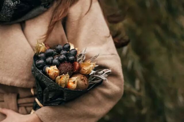 葡萄,鼠尾草,猕猴桃,栗子,蕨,酸浆果
