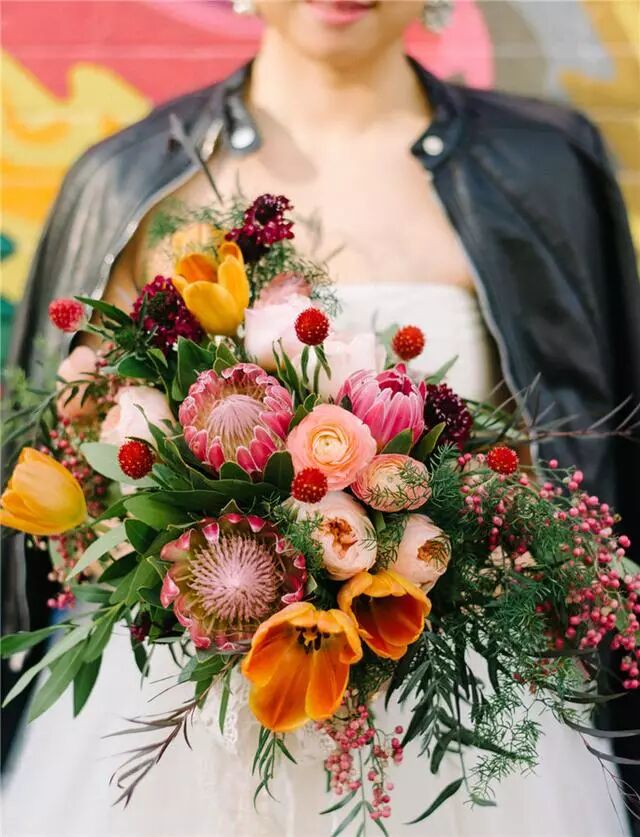 红色也是手捧花中常用的一种色彩,特别适用于传统的婚礼中,热情洋溢,完美展现新娘的幸福和甜蜜感。