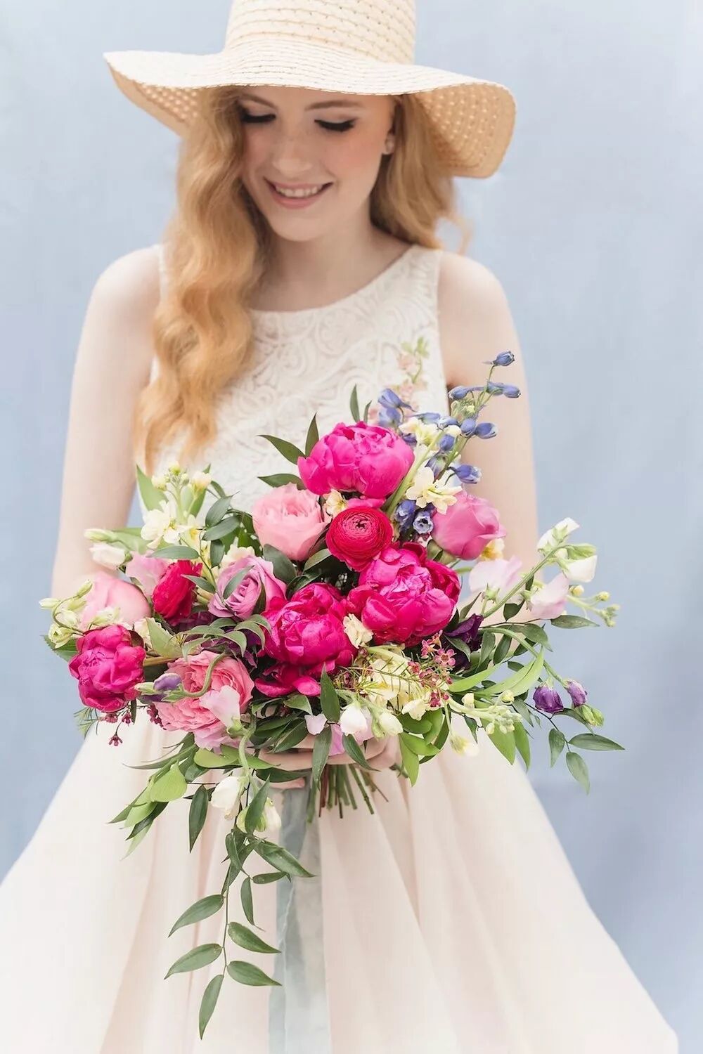 蓝色:蓝色总能让人想到天空、海洋,让人觉得开阔、干净和凉爽。在夏天,用这种颜色的手捧花是非常不错的,尤其当你举行的是沙滩婚礼时。