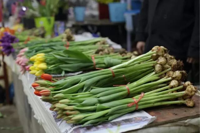 买郁金香的时候不仅看花头是否内收,还可以看是否带花球,买带花球的更好,这种更加新鲜,买回家把花球切掉就可以插了。