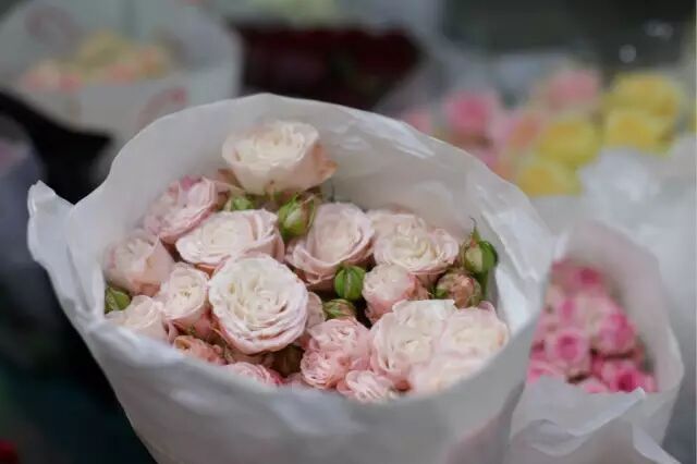 一是看花梗长度。为了保持花材新鲜,花店每天都要将枝茎的下端剪去一段,这样便于它们吸取水分或者营养液。所以相对而言,花梗越长的花材,新鲜度就越好,因为被剪得少嘛。大部分花材的花梗在 20-30cm 的样子,就算是新鲜的了;玫瑰的花梗要在 40-50cm。