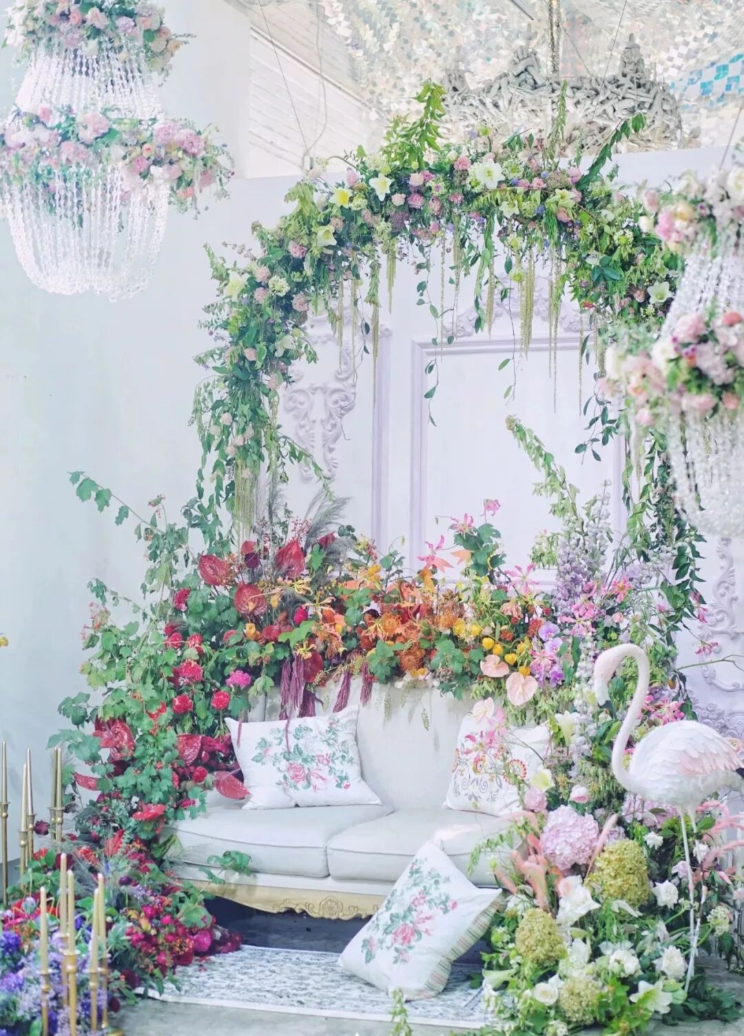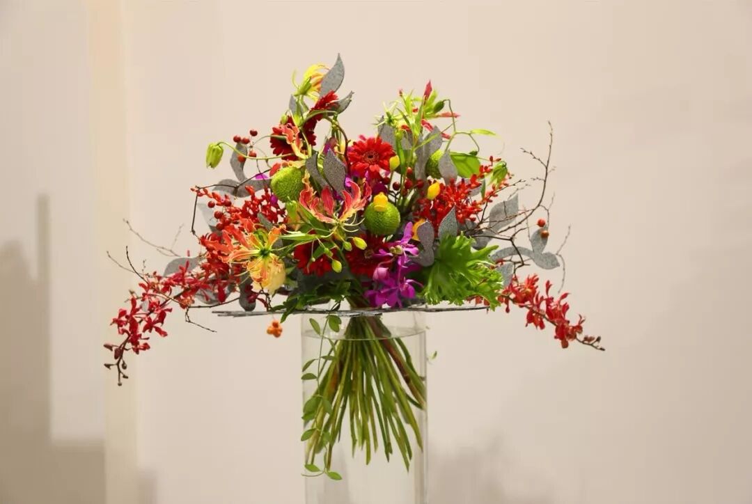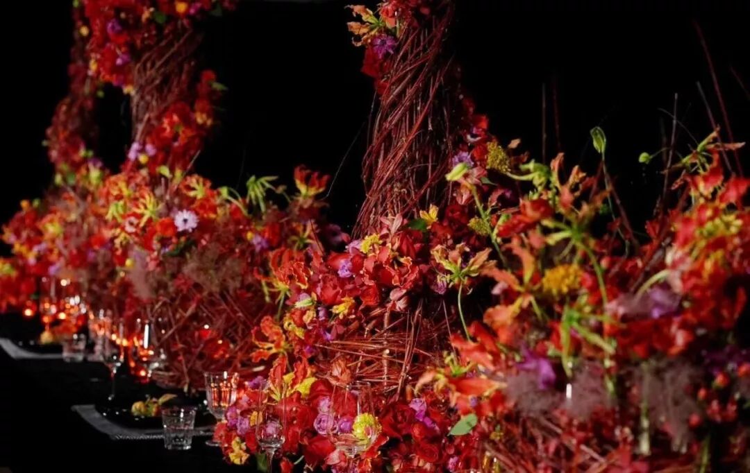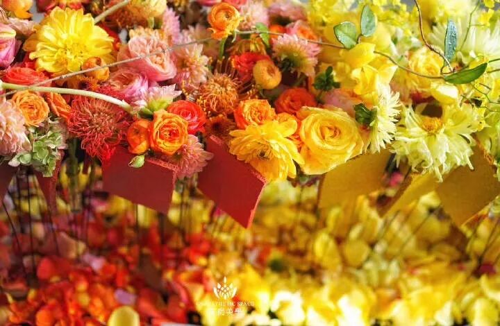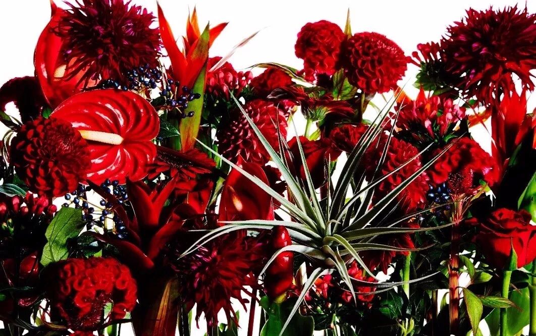 如果要选用一种颜色来代表中华民族,那么「红色」无疑是最为人所认可的颜色。红色象征着喜庆、吉祥、热烈与庄重。在花艺设计中,红色系花材的应用在搭配在手捧花、餐桌花艺与场景设计中多有运用。