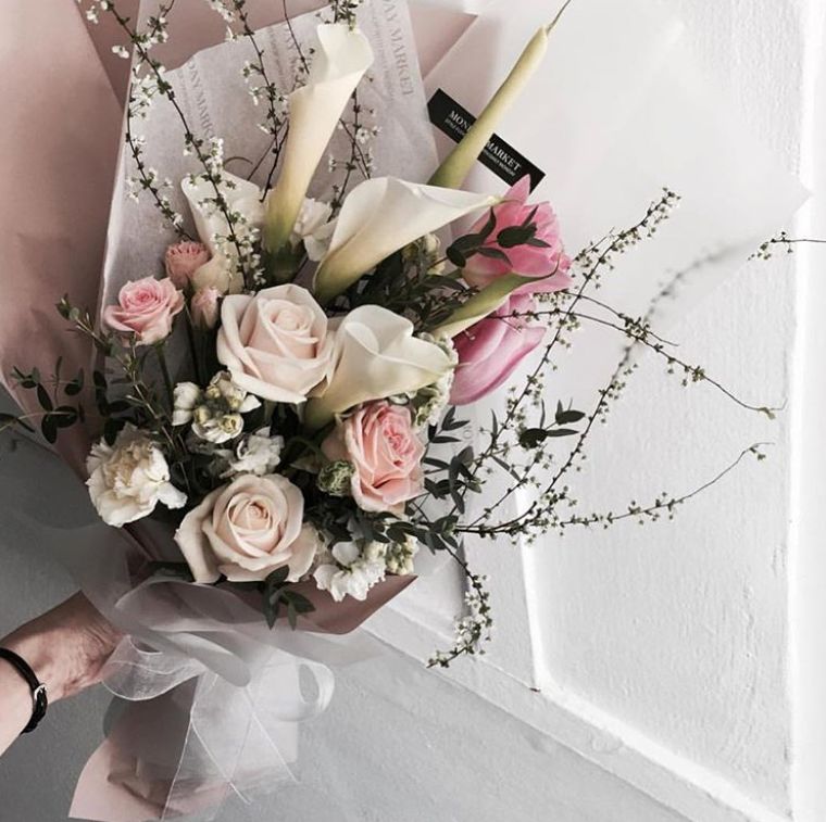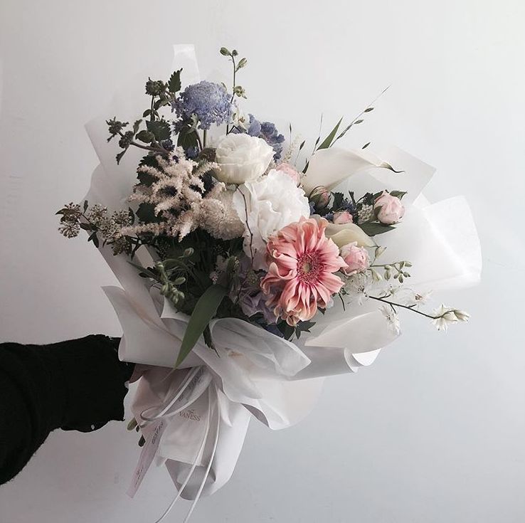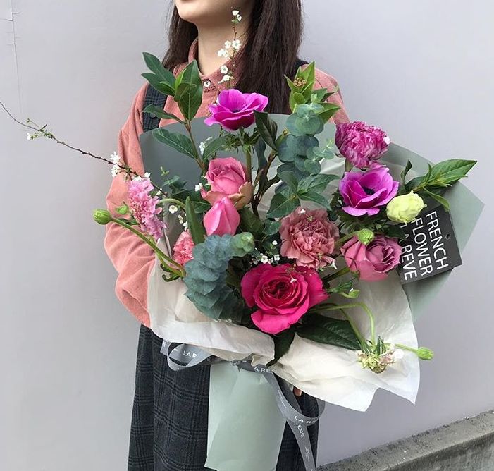 比如年轻人多用浅粉、浅蓝、浅绿、浅紫等时尚小清新的风格;中年人多用深绿、咖啡、深蓝等;老年人可用强对比的大红、大绿加金色,讲究喜庆等。创作花束前提前了解这些对花束的制作会更有帮助哟!